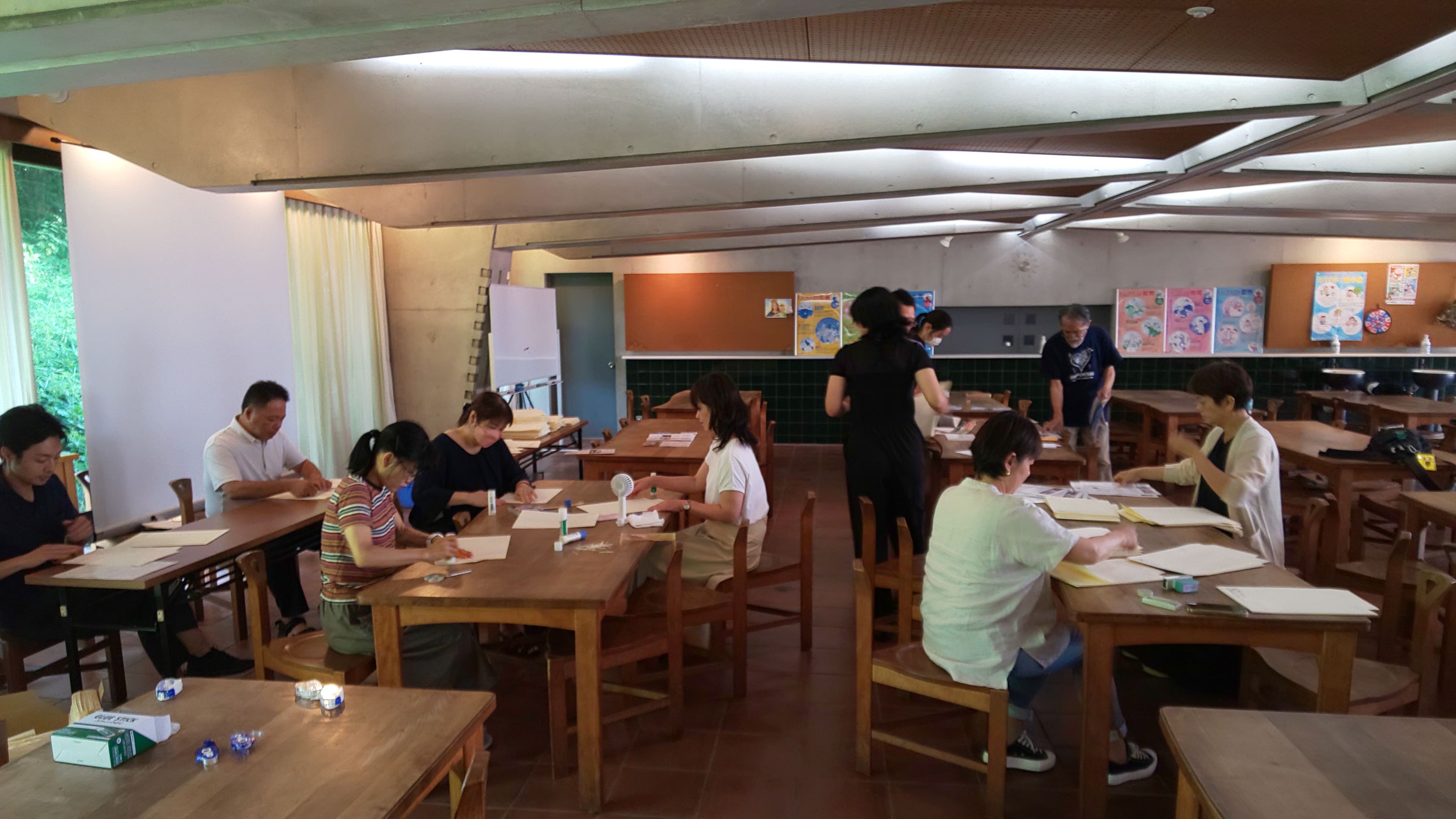 7月20日に会報発送作業を行いました。同窓生とオリーブの会の皆様が集まり、封入作業を行いました。