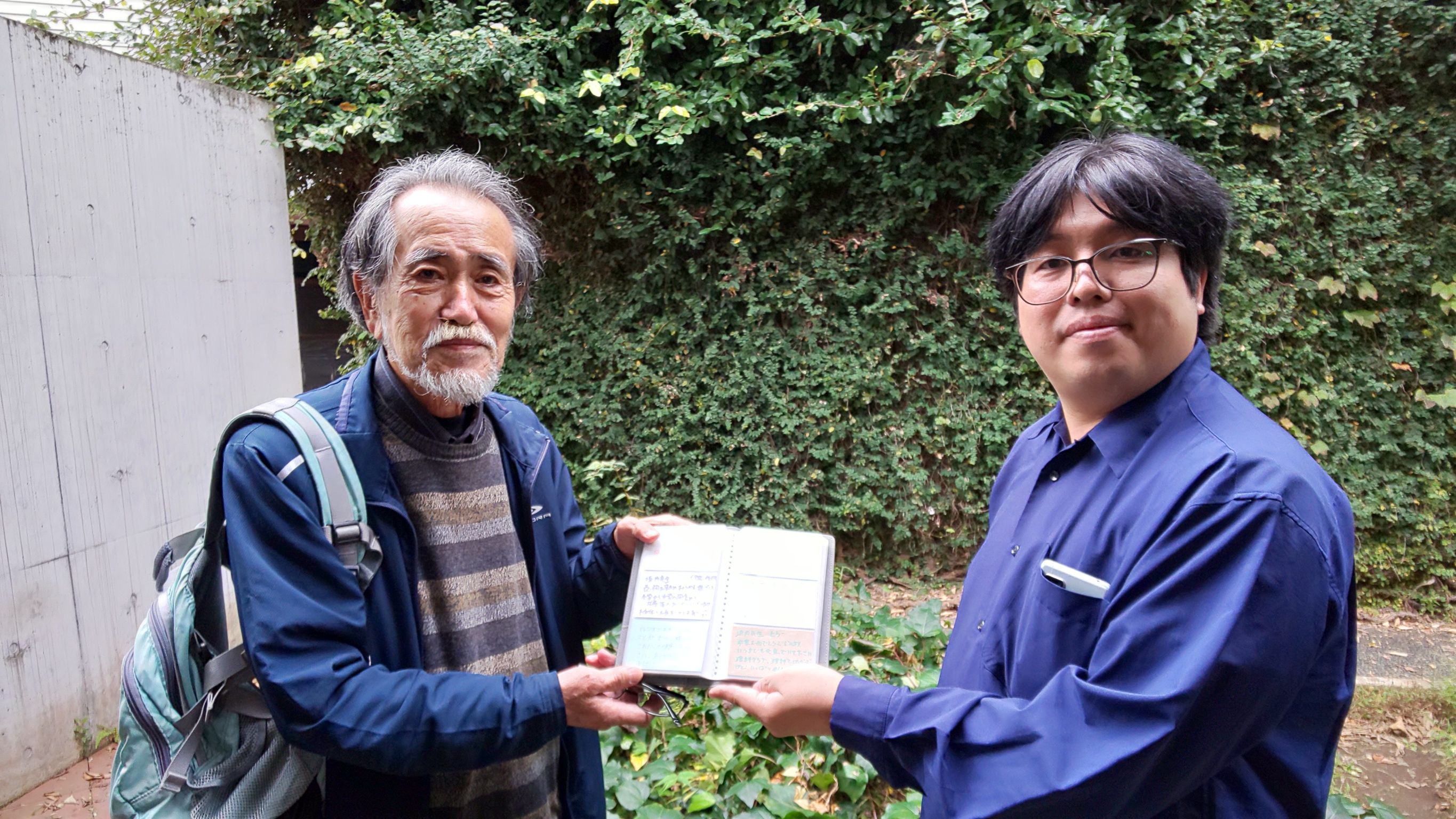 10月26日の文化祭で、皆様から頂いたメッセージカードをまとめた手帳を八木先生・垣内先生にお渡しいたしました。ゆっくりと時間をかけて読みながら当時の思い出を振り返りたいと、先生方は大変お喜びになっていました。